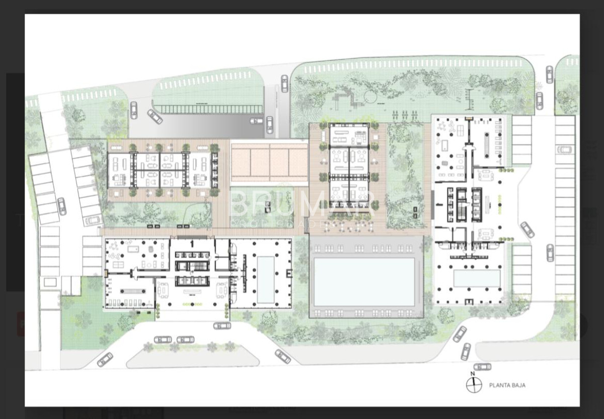 Emplazado en un gran lote de 9500 m² muy cercano a servicios de interés, donde contarán con servicios individuales en cada torre, como por ejemplo piscina interior climatizada, gimnasio, espacio de cowork, saunas, recepción 24 hs; los servicios exteriores de piscina, 11 barbacoas y cancha de usos múltiples será compartida.